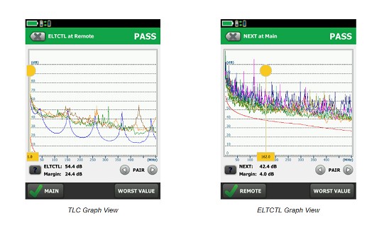 The DSX is the first field tester to support balance measurements including Transverse Conversion Loss (TCL) and Equal Level Transverse Conversion Transfer Loss (ELTCTL). TCL and ELTCTL are important measurements found in the cabling standards. They define a minimum performance for balance, a key parameter to help determine noise immunity. Industrial network owners/operators are especially interested in this property due to the higher level of electromagnetic interference (EMI) within the industrial environment.