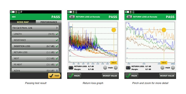 - Graphically displays the source of failures including crosstalk and distance to shield faults for faster troubleshooting