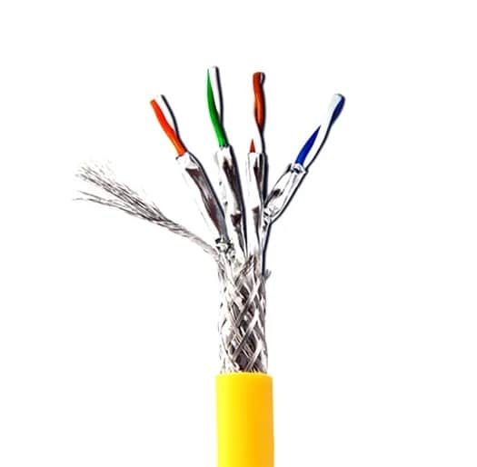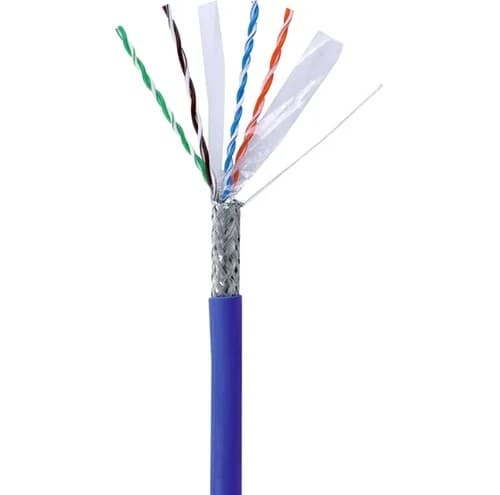 S/FTP refers to a shielded twisted pair cable with double insulation, featuring an additional mesh shield over the STP cable. This mesh is often made from aluminum-magnesium wire. However, these cables can also use tinned copper or pure copper. This design makes S/FTP cables highly resistant to interference and ideal for high-security professional cabling projects.